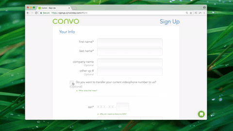 Sign up with Convo
