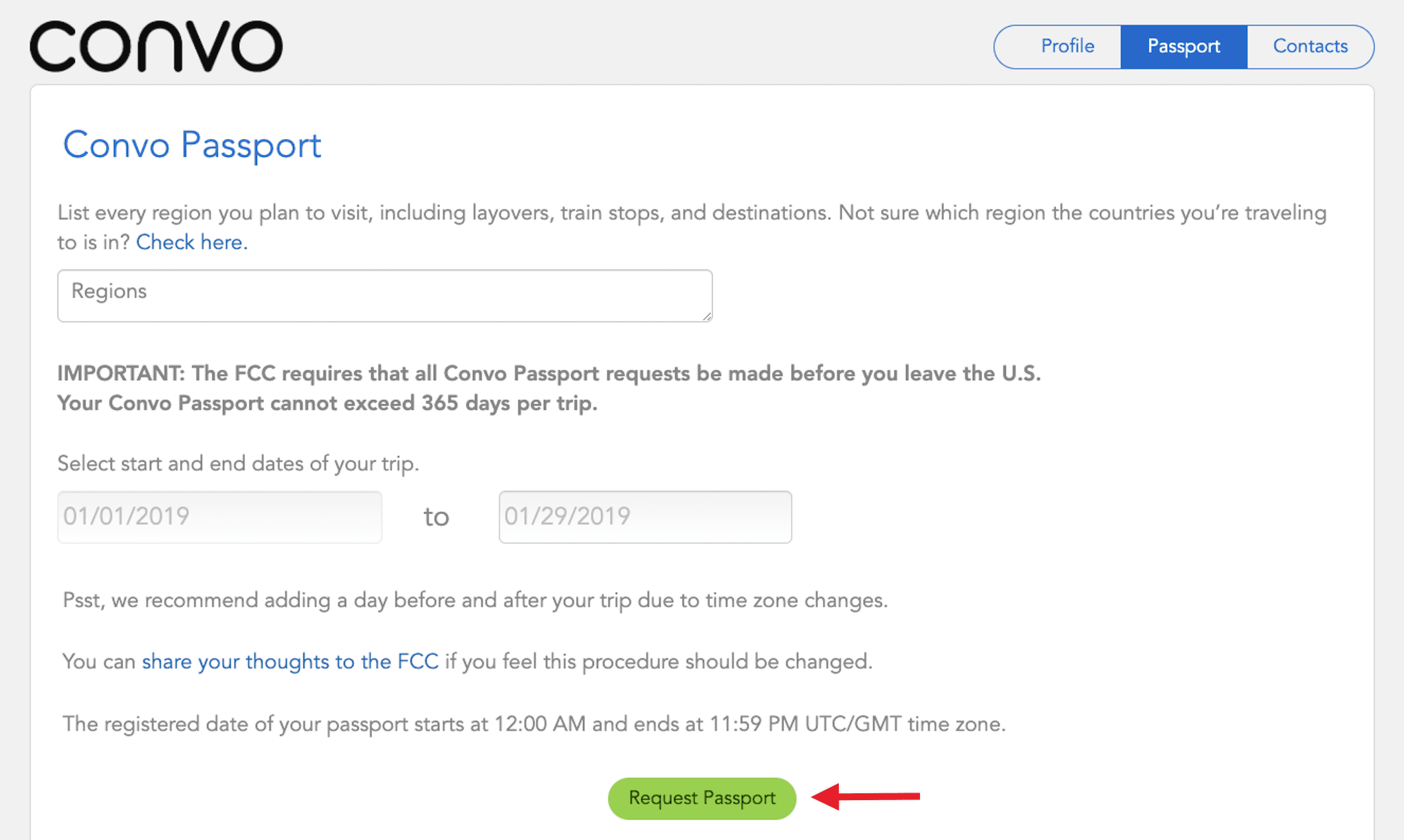 A Convo Passport is valid for up to 365 days (1 year).