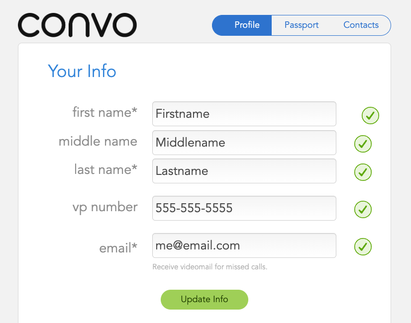 Your Convo Password: use this to update your Convo password. Be sure to add caps and numbers to your password for better security.