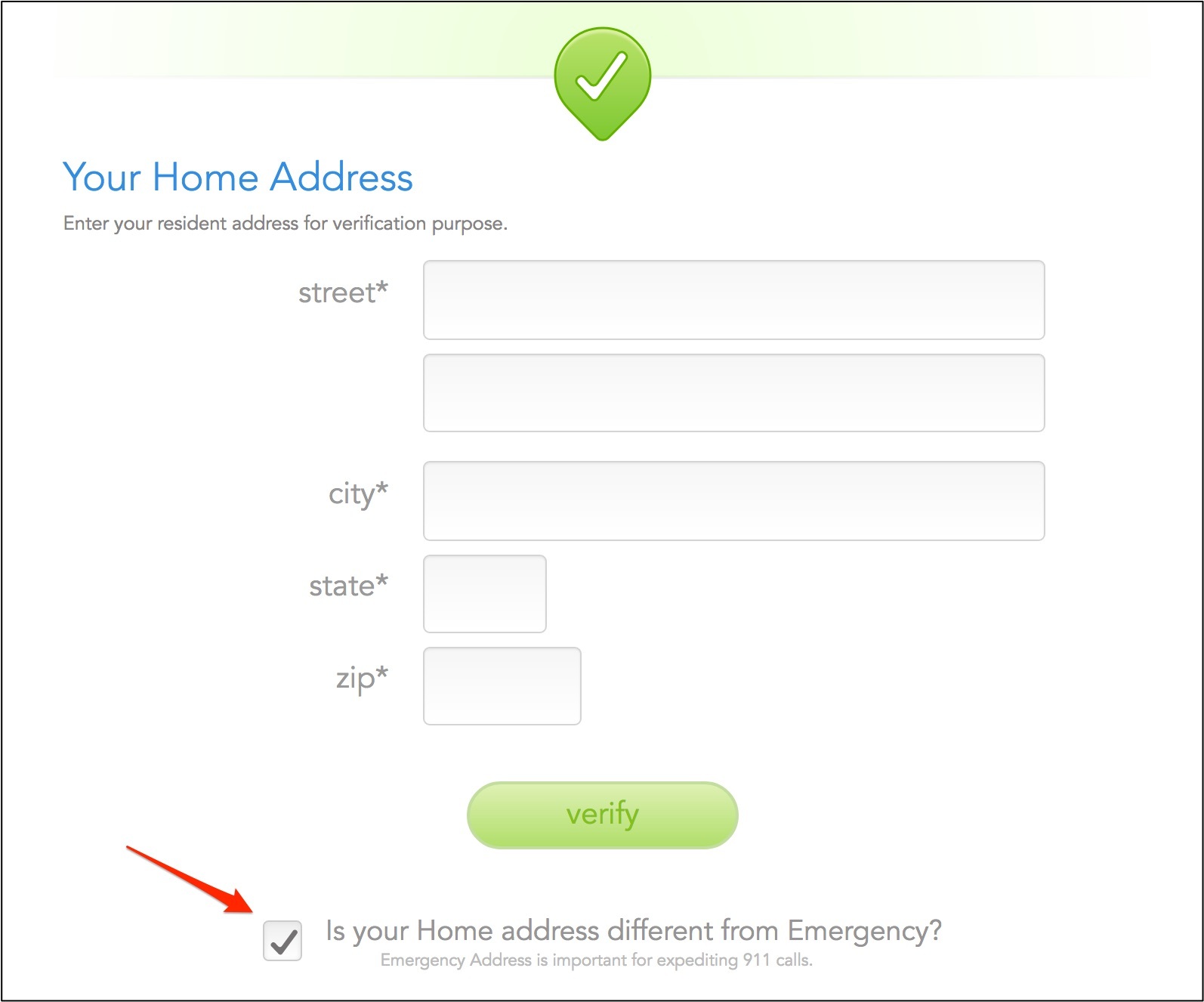 Check the box to add a second address if your emergency address is a P.O. Box address or not your actual residence.