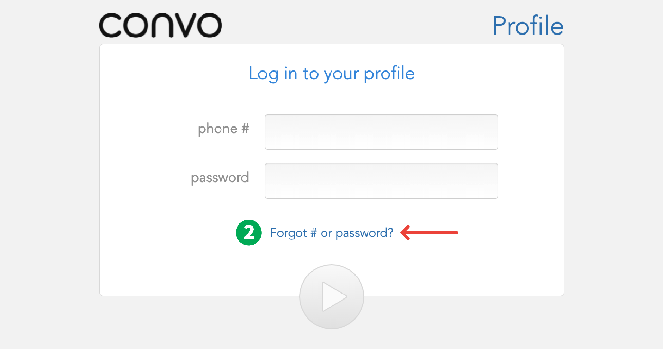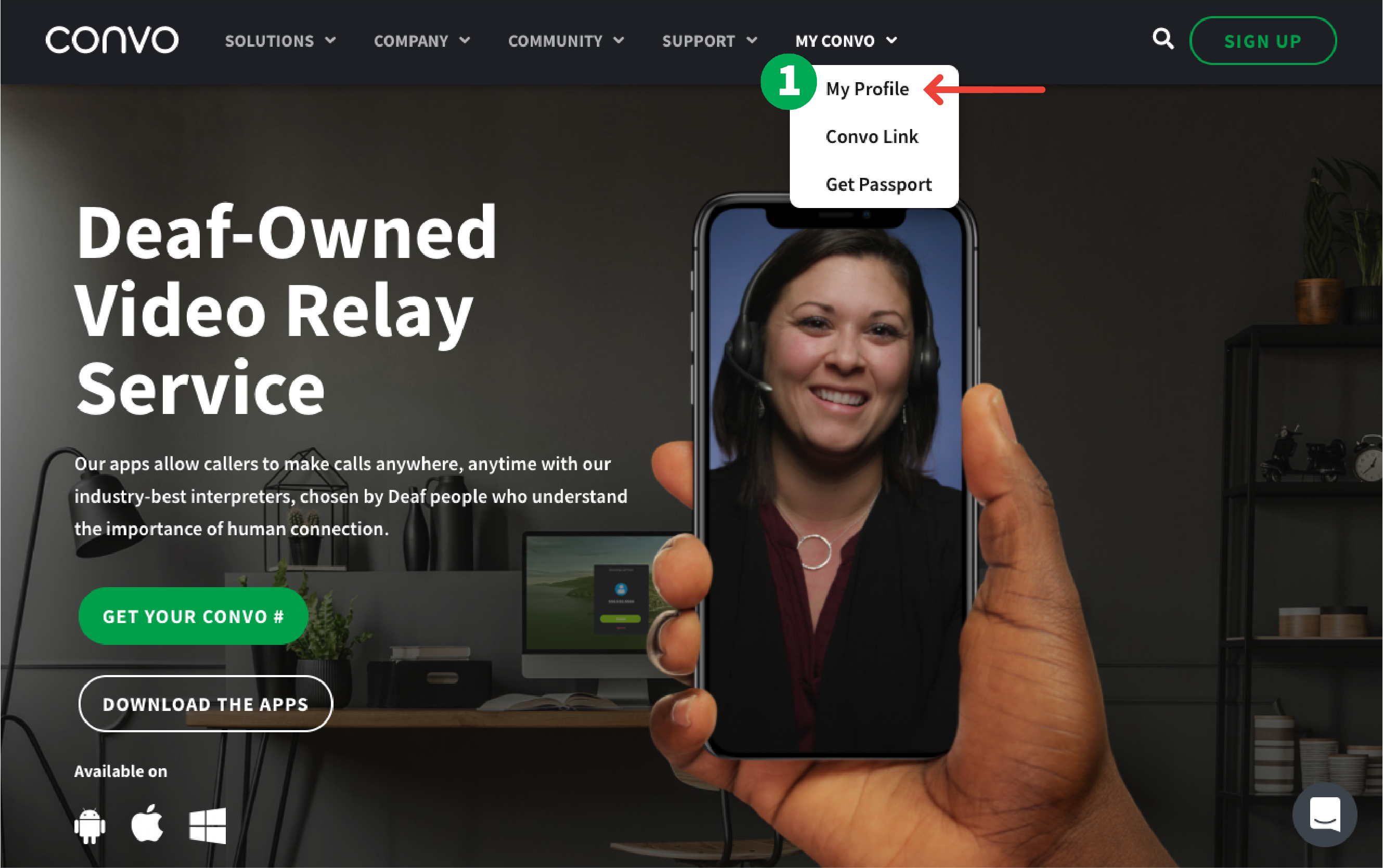 Go to our website and click on MY CONVO > My Profile on the navbar. This brings you to the login page.